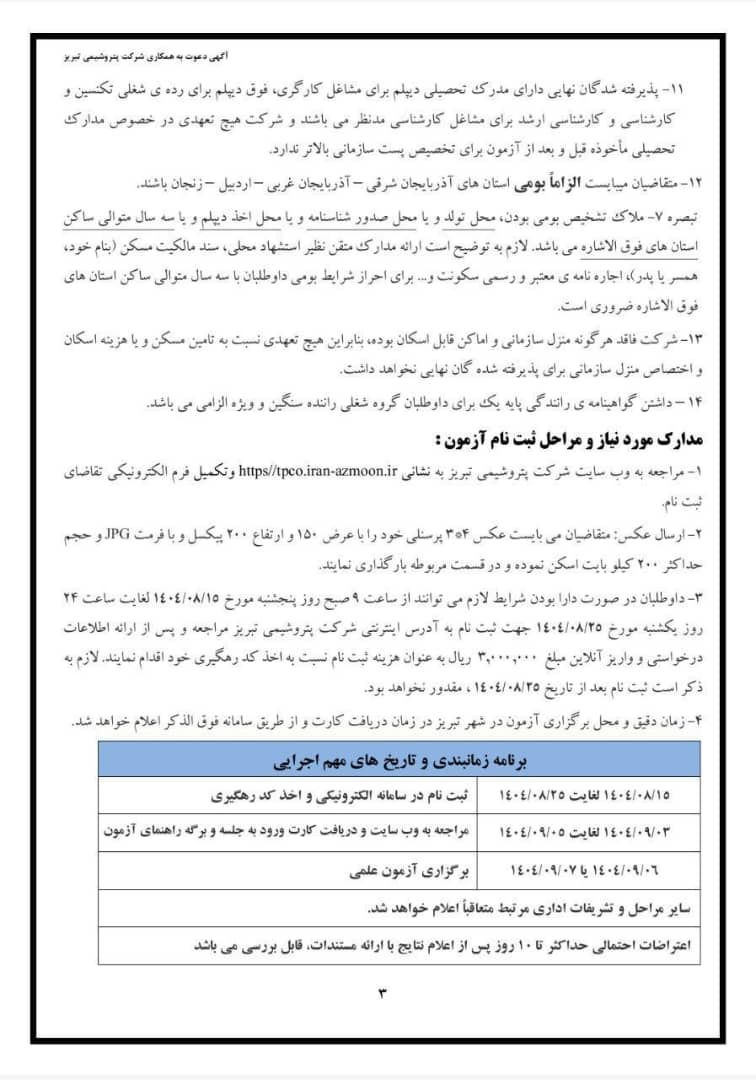 آگهی دعوت به همکاری پتروشیمی تبریز منتشر شد