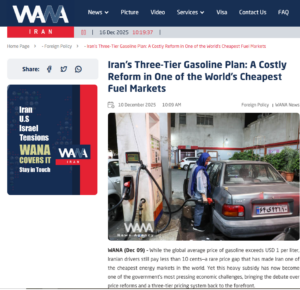 وانا افزایش قیمت بنزین را در قالب بازطراحی «سیستم قیمتگذاری سهگانه» تحلیل کرده و بر استثناییبودن جایگاه ایران در بازار جهانی انرژی تأکید دارد. این رسانه مینویسد که حتی با اجرای نرخ سوم، قیمت بنزین در ایران همچنان فاصله چشمگیری با میانگین جهانی دارد. وانا علت اصلی اصلاح قیمت را ناترازی شدید میان تولید و مصرف، فشار بر ذخایر ارزی و هزینه بالای واردات بنزین میداند و این اقدام را تلاشی برای افزایش شفافیت مصرف و کاهش بار مالی دولت معرفی میکند.