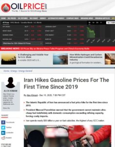 این رسانه افزایش قیمت بنزین ایران را نخستین اصلاح قیمتی از سال ۲۰۱۹ دانسته و به هشدار مسعود پزشکیان اشاره کرده است که ادامه عرضه سوخت با قیمت بسیار پایین، در شرایطی که مصرف از ظرفیت پالایش فراتر رفته، دولت را ناچار به واردات پرهزینه میکند. اویلپرایس تأکید میکند که ایران سالانه نزدیک به ۵۰ میلیارد دلار برای یارانه سوخت هزینه میکند که بالاترین میزان در میان کشورهای عضو شورای همکاری خلیج فارس است و نظام قیمتگذاری پلکانی را تلاشی برای مهار مصرف بالا و کاهش فشار سنگین بودجهای دولت میداند.