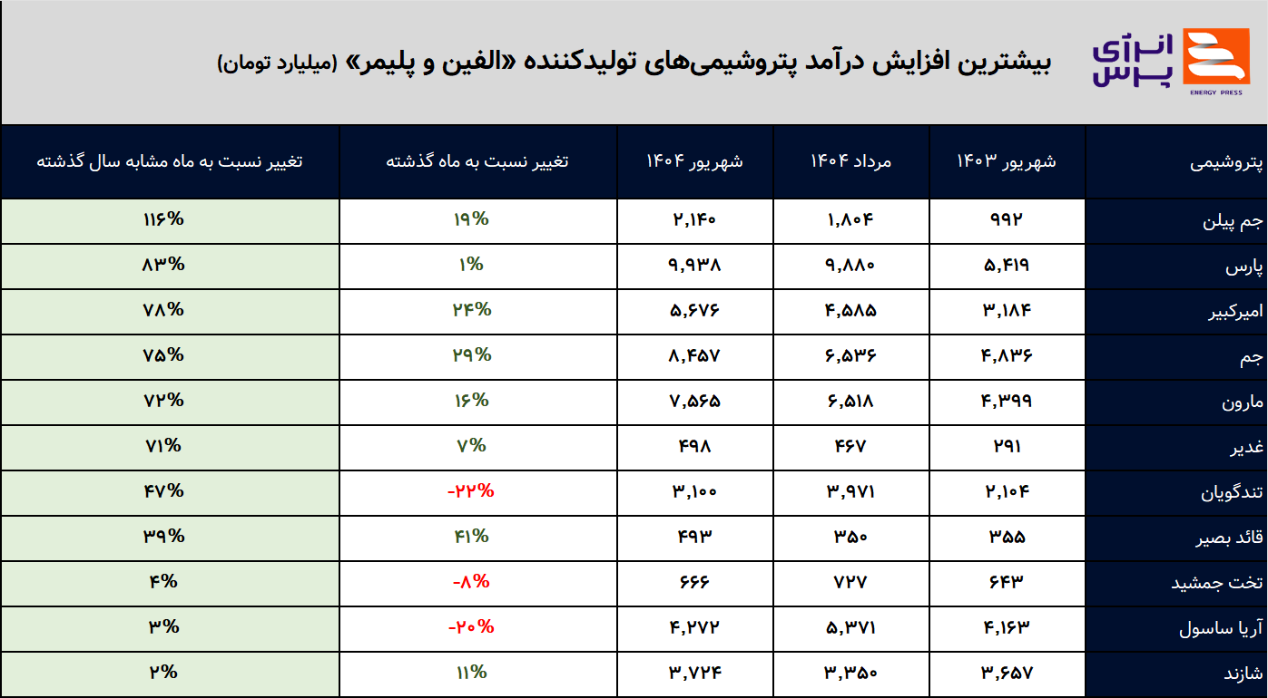 کارنامه پتروشیمی‌های صنعت «الفین و پلیمر» در شهریور‌ ۱۴۰۴