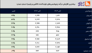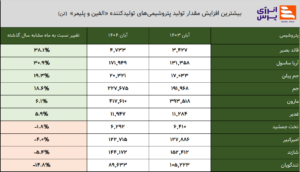 بیشترین افزایش مقدار تولید در آبان ۱۴۰۴