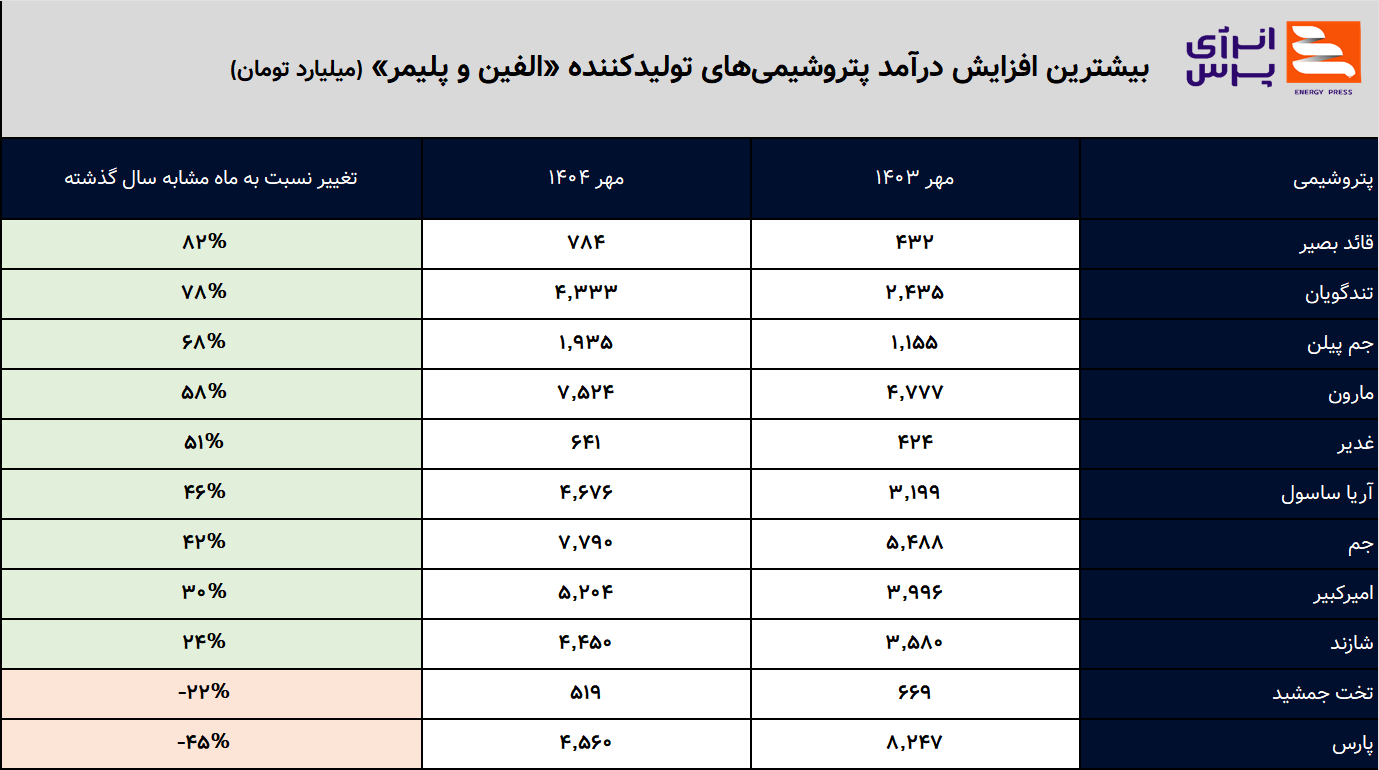 کارنامه پتروشیمیهای صنعت «الفین و پلیمر» در مهر ۱۴۰۴